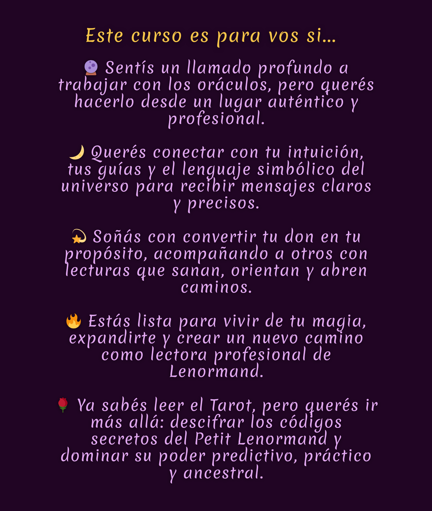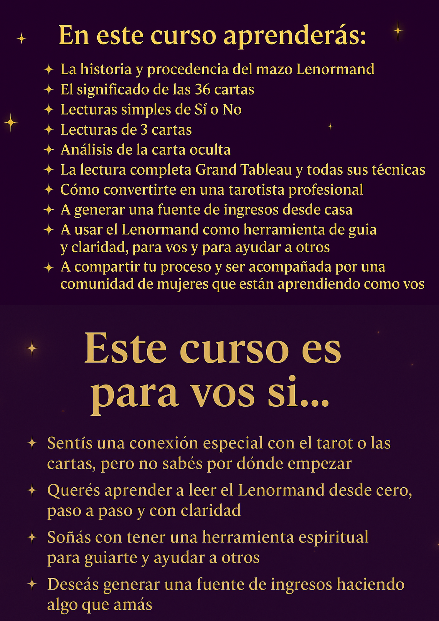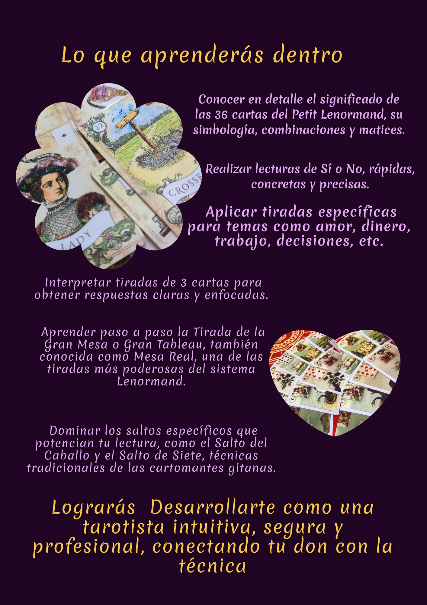 Vas a necesitar un mazo Petit Lenormand de 36 cartas. En el curso vas a poder descargar el tuyo para imprimir y hacer tus primeras prácticas.